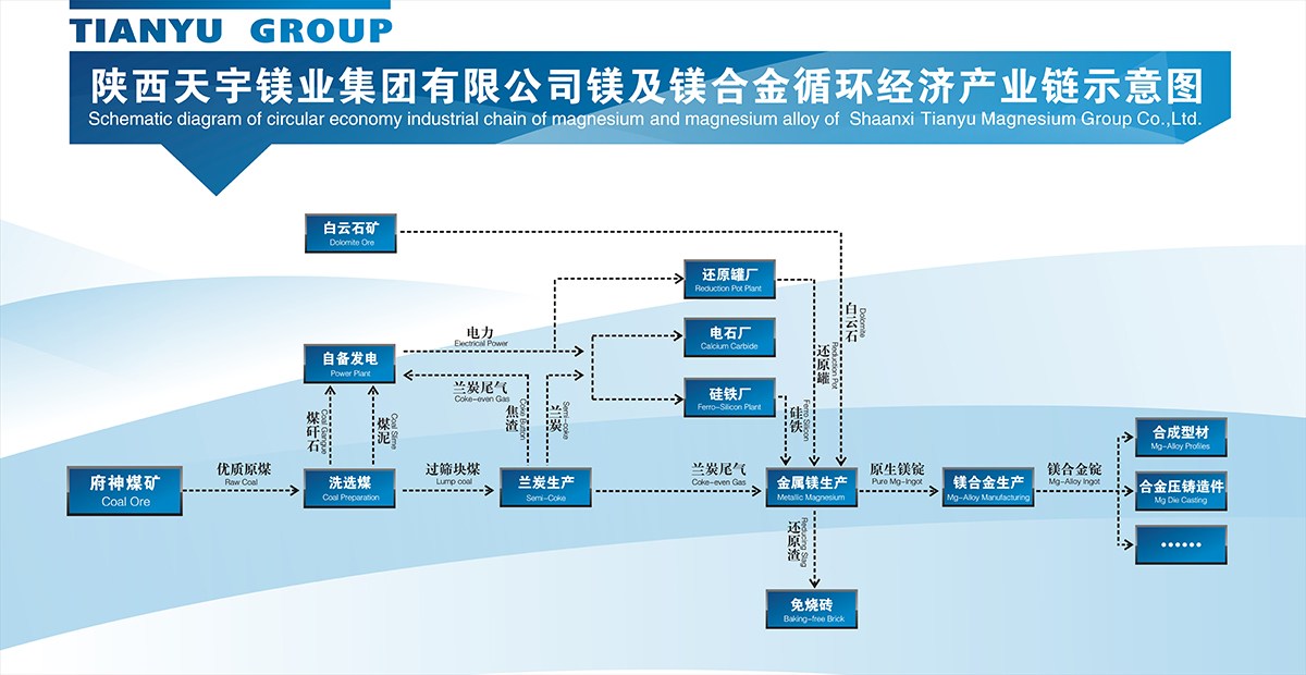 天宇集團獨資創建的鎂及鎂合金循環經濟產業基地已建、在建項目的生產能力:年產200萬噸洗選煤、年產蘭炭120萬噸、年產煤焦油12萬噸、年產沫煤120萬噸、年產鎂錠50000噸、年產鎂合金錠10000噸、年產鎂合金型材5000噸、年產鎂合金壓鑄件5000噸、年產鎂渣免燒磚3億塊、年產硅鐵6萬噸、年產電石20萬噸以及2×50KW自備發電項目,以上項目全部建成投產后在冊員工超過2000人,形成固定資產近15億元,預計年產值將達到40億元。企業自營鎂錠出口業務每年創匯近2000萬美元。  更多信息>